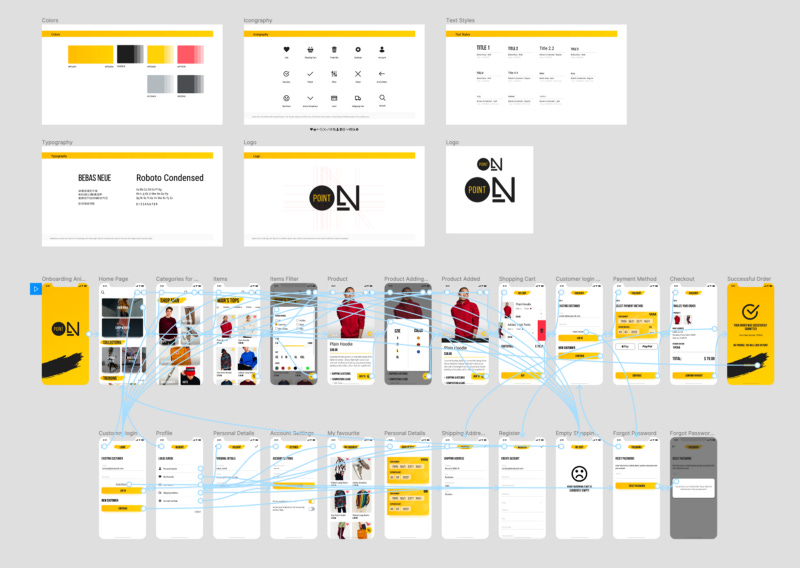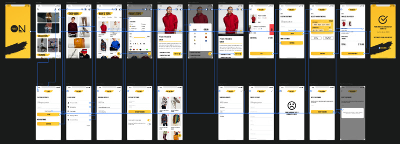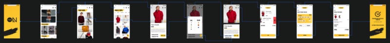 I don’t want this flow to be to big for this demonstration, so I remove some of the screen, e.g. the sign-up flow. The flow is simplified, starting from the Onboarding screen to Checkout. Our imaginary user would go through the home screen, select a product and check out at the end.