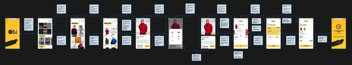 In short, IX flow, just like UI flow, is a combination of UI screens with flow charts. But IX flow goes one step further and incorporates detailed information on interactions. In other words, it is a static prototype. Even though IX flow can take time to create, it doesn’t take as much as animated prototypes while providing more information, especially in the cases of complex products with multiple decision nodes.